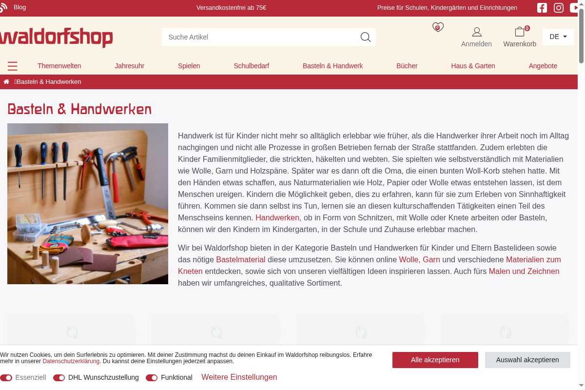 Wolle, Filzen, Arbeiten mit Holz, Weben - Zubehör finden Sie hier. Bastelbedarf und alles rund ums Handwerken mit Kindern jetzt im Waldorfshop bestellen!