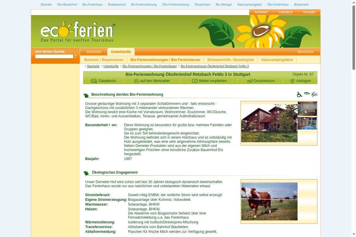 Biohotel - Öko-Bauernhof - Bio-Ferienhaus - Biobauernhof - Bio-Ferienwohnung - Öko-Ferienwohnung - Ökopension - Bio-Weingut - Naturcampingplatz - Öko-Ferienhaus - Biopension Anbieter Leitsätze Kontakt eco-ferien-Suche: Startseite Unterkünfte Merkzet