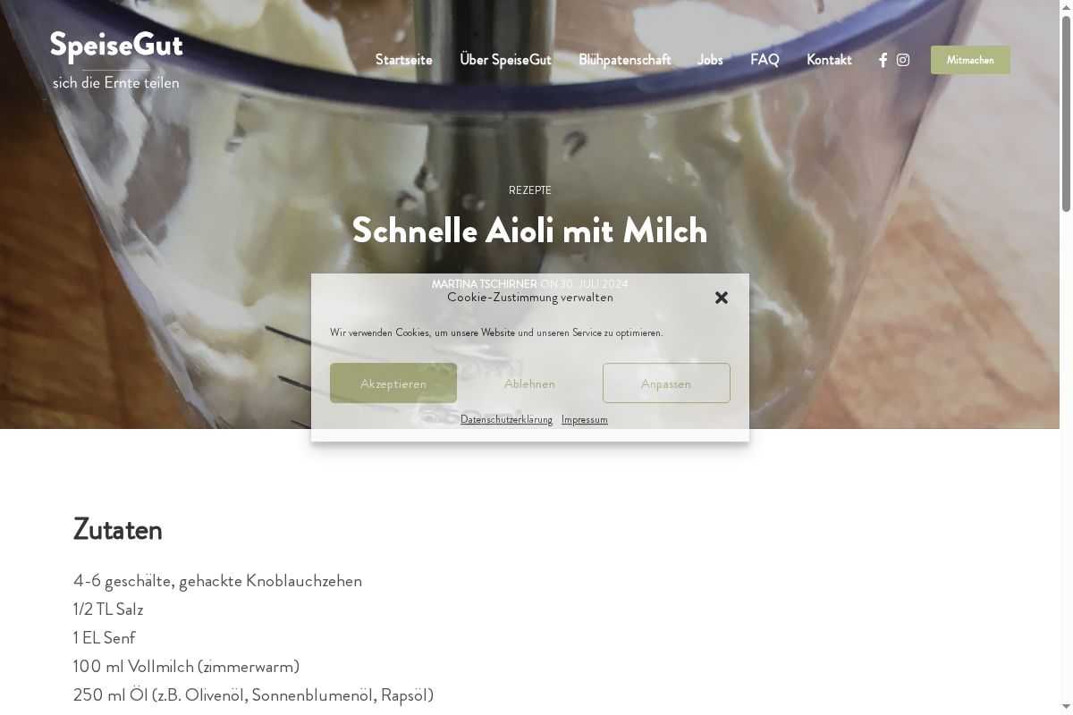 Startseite Über SpeiseGut Blühpatenschaft Jobs FAQ Kontakt Mitmachen Menu Close Milch Rezepte Rezepte Schnelle Aioli mit Milch Martina Tschirner 2024-07-30T13:50:00+02:00 Frisches Gemüse aus Berlin? Werde Teil unserer Solawi! Genieße wöchentlich fri