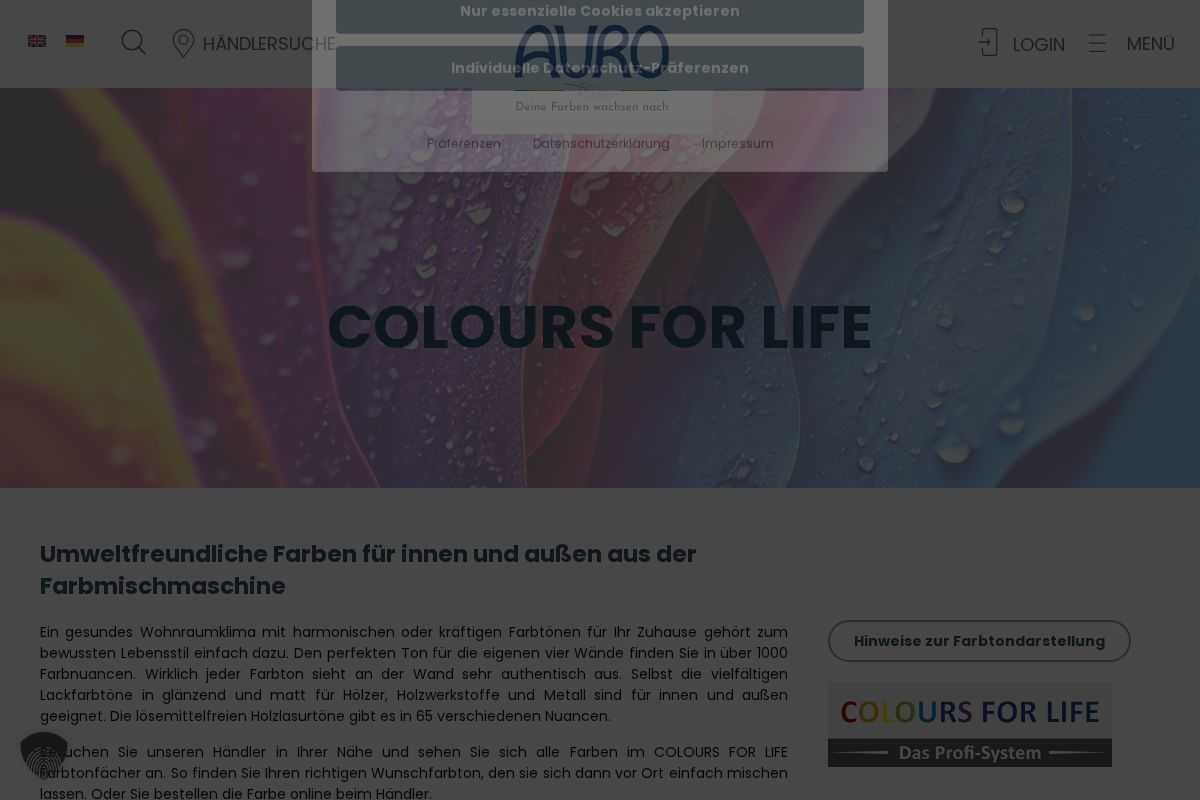 Entdecken Sie mit COLOURS FOR LIFE von AURO mehr als 1.000 Wunschfarbtöne – als Lasur, Lack, Wand- oder Lehmfarbe. Finden Sie Ihren idealen Farbton vor Ort oder lassen Sie ihn sich beim Händler mischen. Jetzt online entdecken.