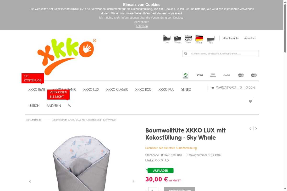 Wählen Sie Baumwolltüte XKKO LUX mit Kokosfüllung - Sky Whale zu günstigen Preisen mit sofortigem Versand.