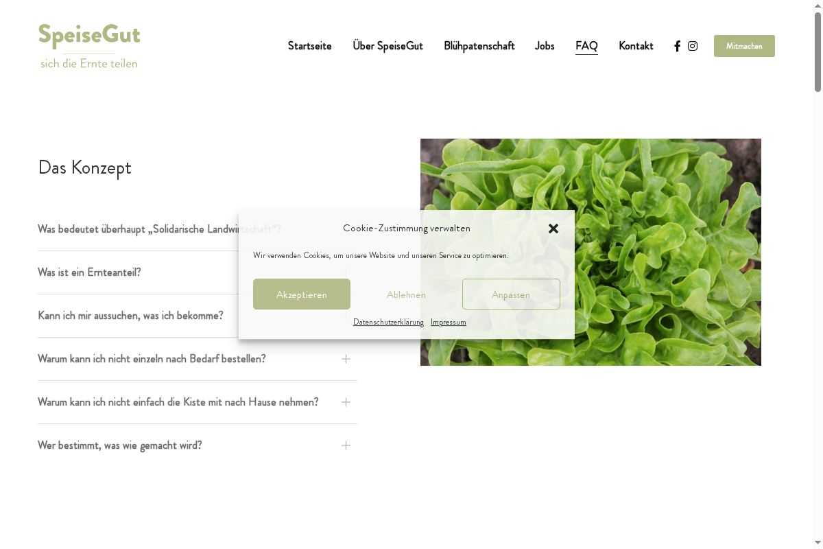 Startseite Über SpeiseGut Blühpatenschaft Jobs FAQ Kontakt Mitmachen Menu Close Das Konzept Was bedeutet überhaupt „Solidarische Landwirtschaft“? Kurz und knapp: Wir als Gemeinschaft von Verbraucher*innen bezahlen unseren Bauern und alle Beschäftigt